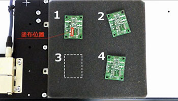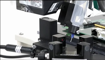 由相機(jī)對(duì)X軸,Y軸偏移量進(jìn)行確認(rèn),由激光高度傳感器對(duì)高度的變化進(jìn)行連續(xù)測量,根據(jù)其結(jié)果一邊進(jìn)行偏移量補(bǔ)正一邊實(shí)現(xiàn)點(diǎn)膠作業(yè)