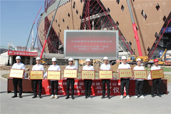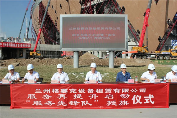 七月的艷陽下,格賽克公司黨支部的“服務(wù)再提升啟動(dòng)暨‘服務(wù)先鋒隊(duì)’授旗儀式”在十七冶蘭州奧體中心體育場及三館項(xiàng)目部正式舉行。