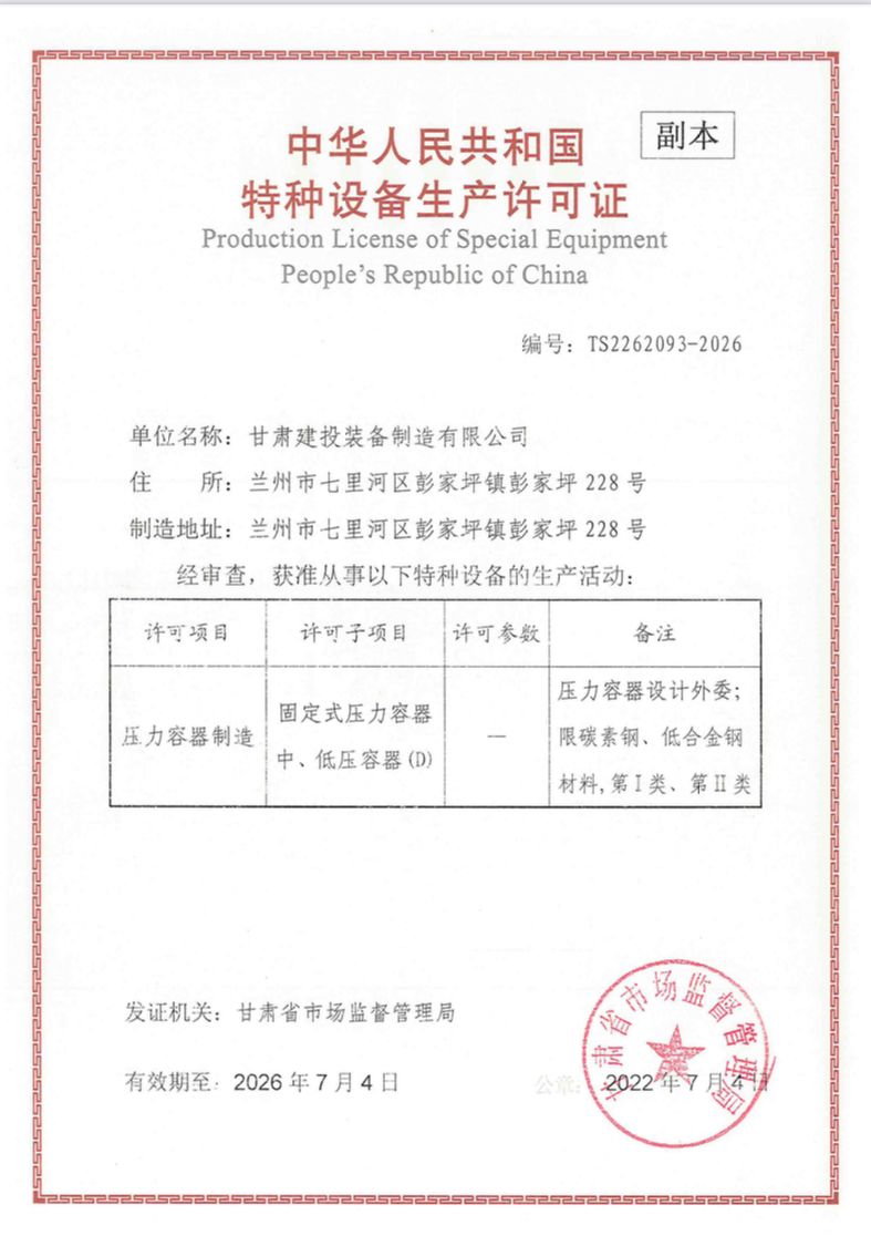 裝備公司在對(duì)省十四次黨代會(huì)精神集中學(xué)習(xí)的基礎(chǔ)上,圍繞“強(qiáng)科技、強(qiáng)工業(yè)、強(qiáng)省會(huì)、強(qiáng)縣域”的“四強(qiáng)”行動(dòng)戰(zhàn)略,立足做強(qiáng)第一產(chǎn)業(yè)這一發(fā)展目標(biāo),在特種設(shè)備資質(zhì)取證工作上持續(xù)發(fā)力,于近日成功取得特種設(shè)備制造許可證書,該資質(zhì)可生產(chǎn)固定式壓力容器中、低壓容器(D)級(jí)產(chǎn)品(限碳素鋼、低合金鋼材料,第I類、第II類)
