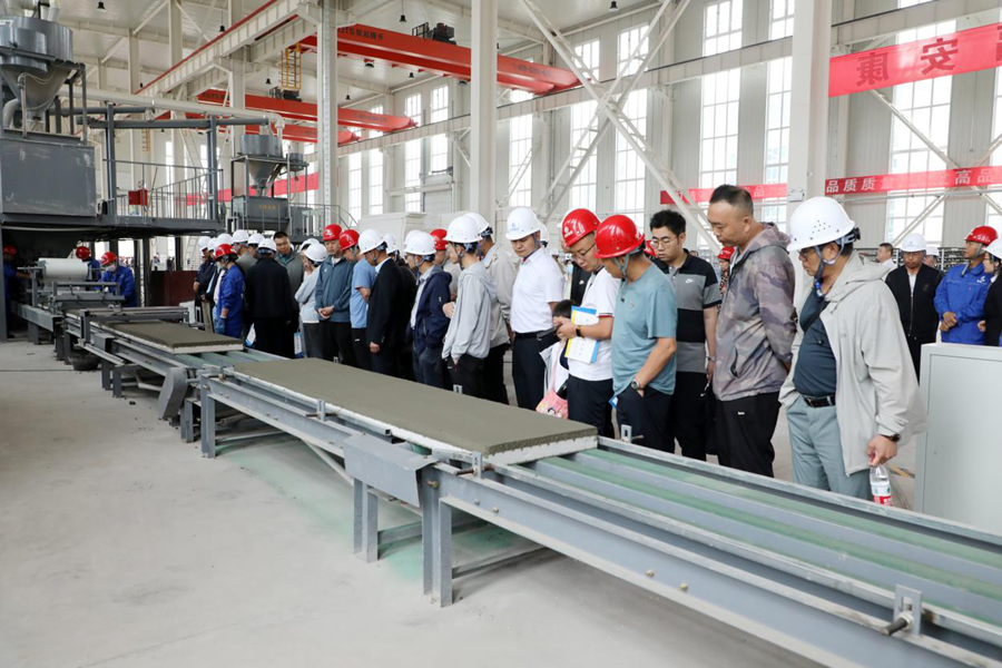 會前,與會人員前往康樂縣工業(yè)集中區(qū)甘肅格賽克藍(lán)川新材料公司進(jìn)行了現(xiàn)場觀摩,甘肅省建設(shè)設(shè)計咨詢集團有限公司副總工程師王躍軍結(jié)合現(xiàn)場的生產(chǎn)工藝、產(chǎn)品性能及施工工序圍繞《JT免拆復(fù)合保溫模板系統(tǒng)》圖集進(jìn)行了詳細(xì)講解。