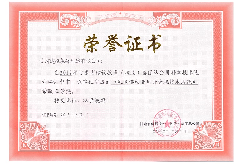 風(fēng)電塔架專用升降機(jī)技術(shù)規(guī)范科技進(jìn)步獎(jiǎng)