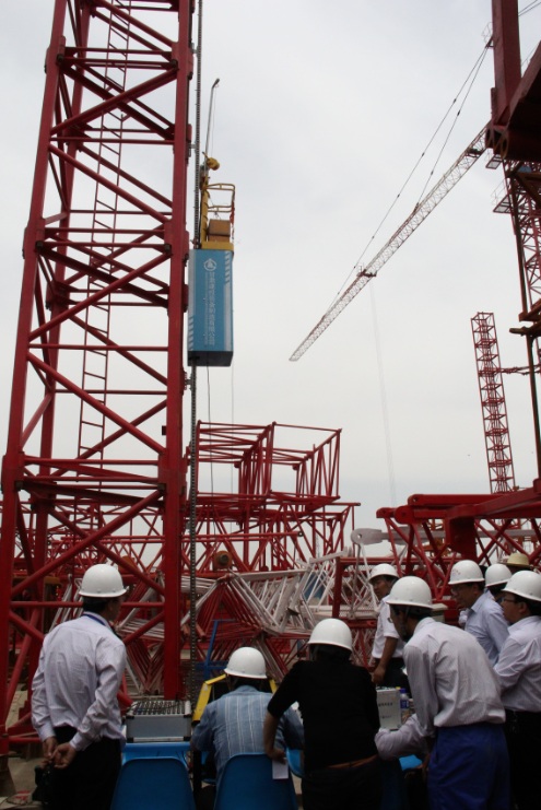 2013年5月23日,甘肅特種設(shè)備檢驗研究所專家一組四人行蒞臨裝備公司,對公司新進研發(fā)的ZFC100多功能智能化檢修、檢測平臺進行了型式試驗。這次試驗過程分為資料審核和現(xiàn)場試驗,現(xiàn)場試驗主要針對多功能智能化檢修、檢測平臺傳動系統(tǒng)、導(dǎo)軌架標(biāo)準節(jié)、電氣系統(tǒng)、安全裝置、穩(wěn)定性試驗、安裝試驗、空載試驗、載荷試驗、結(jié)構(gòu)應(yīng)力測試等項目進行了試驗,經(jīng)測試各項指標(biāo)符合標(biāo)準要求,專家組一致對試驗測試結(jié)果表示滿意。這次試驗的成功,驗證了多功能智能化檢修、檢測平臺設(shè)計的合理性及其該產(chǎn)品在標(biāo)準規(guī)定的條件下運行的適應(yīng)性,從而保證了多功能智能化檢修、檢測平臺的產(chǎn)品質(zhì)量和安全性達到標(biāo)準。