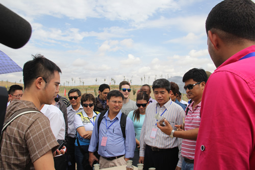 日前 國(guó)家商務(wù)部舉辦了為期10天的2016年發(fā)展中國(guó)家干旱區(qū)水資源可持續(xù)發(fā)展研修班。8月19日,來自科納、南非、巴拿馬、墨西哥、越南、阿富汗和緬甸等11個(gè)國(guó)家的37名外籍研修班學(xué)員專程來甘肅建投新能源公司觀摩實(shí)習(xí)。