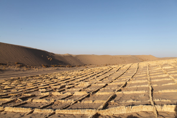 初春時節(jié),正是固沙治沙的黃金時節(jié),在武威市涼州區(qū)騰格里沙漠南部邊緣,多臺固沙機正在進行固沙作業(yè),整齊劃一的機械鋪設草方格成為一道獨特的風景線。這是甘肅建投工程與生物治沙工作正式由實驗階段轉(zhuǎn)入落地實施的第一個項目,也是目前我國首個機械固沙項目。